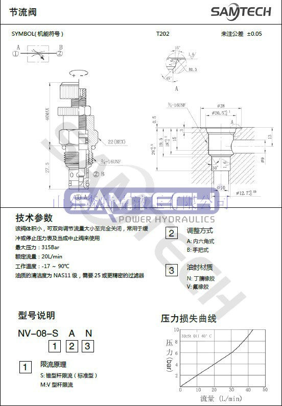 • 節(jié)流單向閥NV08液壓插裝式節(jié)流閥/流量控制閥 螺紋式節(jié)流閥