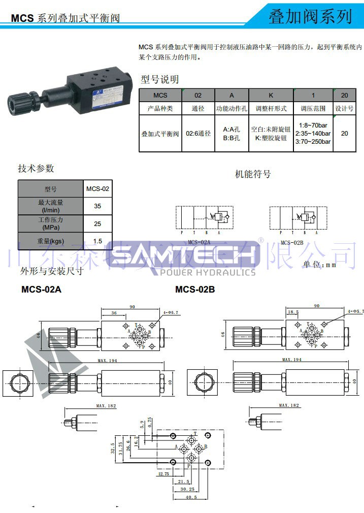 • 疊加閥MVCS-03B液壓疊加式液控單向閥 疊加閥 疊加式平衡閥 抗衡閥