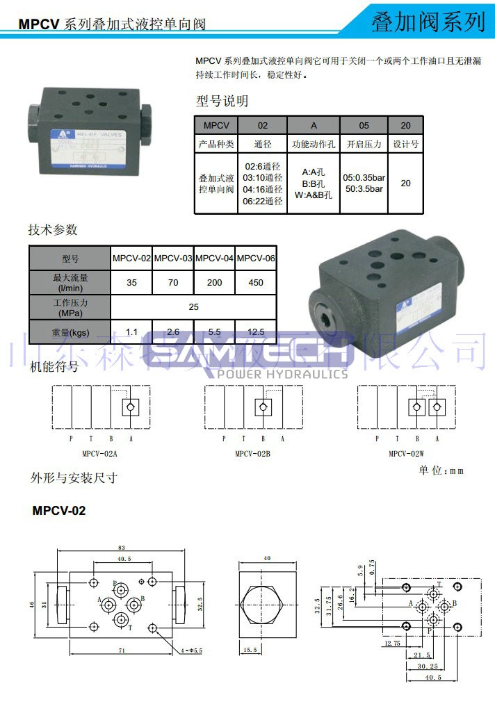 • 疊加閥MPCV-02W液壓疊加式液控單向閥 液壓鎖 保壓閥