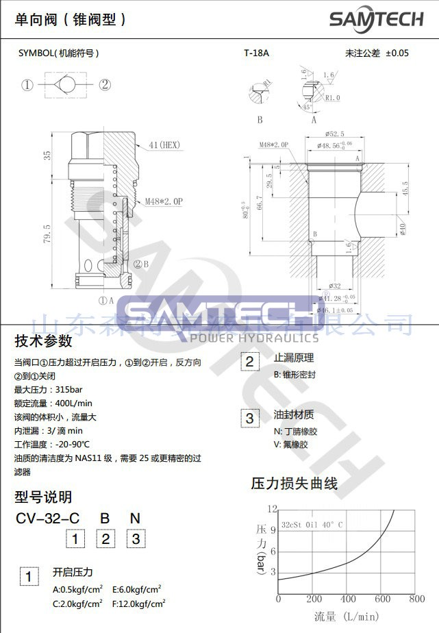 • 螺紋單向閥CV-32/DF25(錐閥型)液壓螺紋插裝閥螺紋插裝式 單向閥 保壓閥